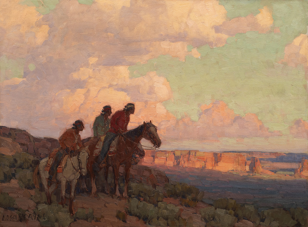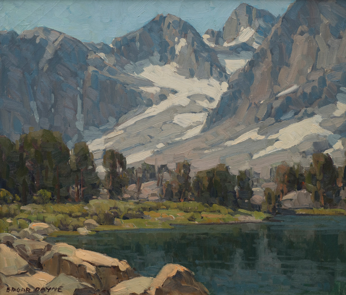 At the age of 14, Edgar Payne ran away from his home in Missouri in order to pursue a career as an artist, something his father forbade. He began his career as a house and sign painter. In 1911, a sketching trip west took him to Laguna Beach, California, where he settled in 1917. Later sketching trips were taken into the Sierras, a place he came to understand so intimately that a lake in that region was named for him. Payne married Elsie Palmer, a fellow Chicago artist, in 1912. In the 1920s, Payne traveled and worked in Europe, winning an honorable mention in the 1923 Paris Salon. When he returned to California, he wrote a successful book on landscape painting and made a movie about the Sierras. Also fond of the American Southwest, Payne painted the canyon and mesa country of Arizona and New Mexico. A well-known member of the California "Eucalyptus School of Painters," Payne’s work won awards from the National Academy of Design and the Chicago Art Institute.