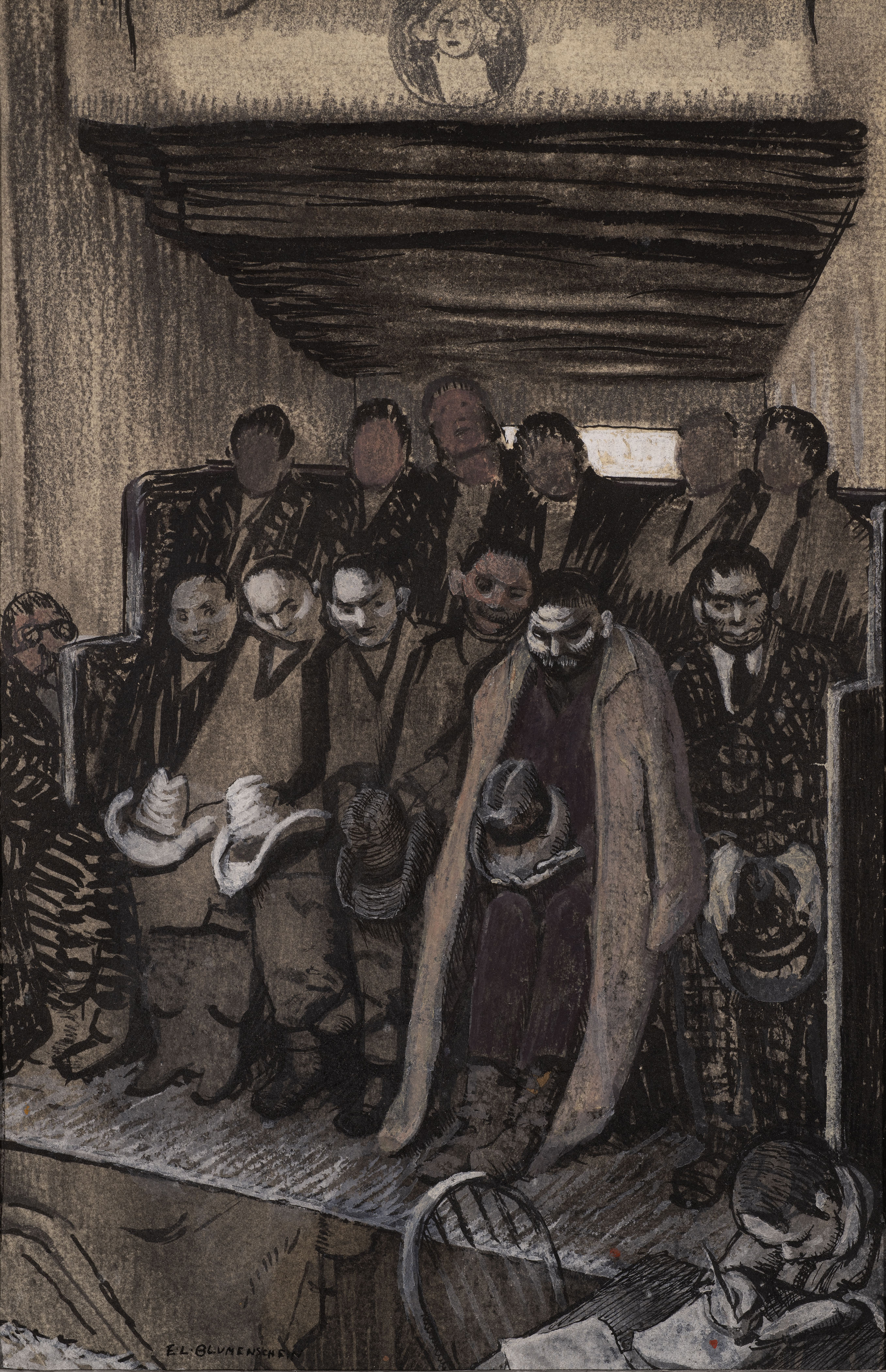 Ernest Blumenschein, a founding member of the Taos Society of Artists in 1915, was one of the most celebrated of this early artist community. Notably, he was also one of the earliest advocates for Taos, declaring it an ideal home for an art colony. In September of 1898, on a painting excursion with Bert Geer Phillips, as the two were traveling by wagon, a wheel broke several miles outside of Taos. Hoping for wheel repair, when they arrived in the town, they found much more. Taos had beguiled them, convincing them that their quest for inspiring subject matter needed no further search.
