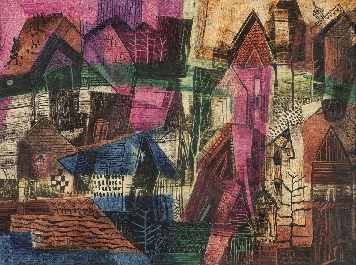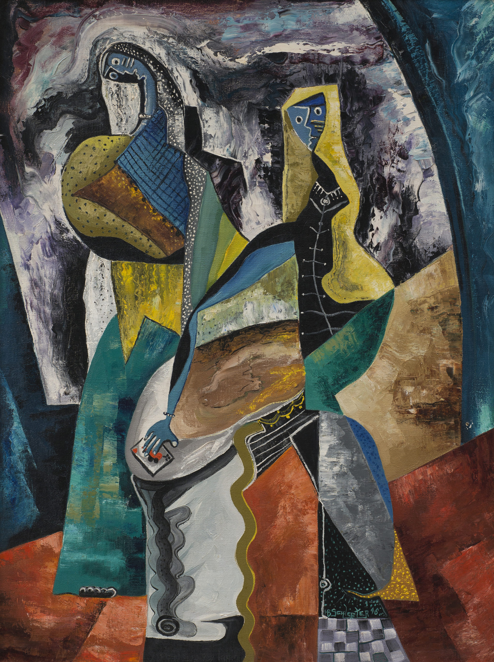 Born in Buffalo, New York, Howard Schleeter briefly attended the Albright Art School before serving in the U.S. Navy during World War I. Arriving in New Mexico in 1929, Schleeter first worked as an artist in the Federal Arts Project of 1936 - 1942. He soon began to experiment with media, exploring and inventing new painting techniques. A prolific painter who also taught and lectured, Schleeter lived to see his work exhibited at the DeYoung Museum in San Francisco, the Art Institute of Chicago, the Dallas Museum of Art, and the Guggenheim Museum.