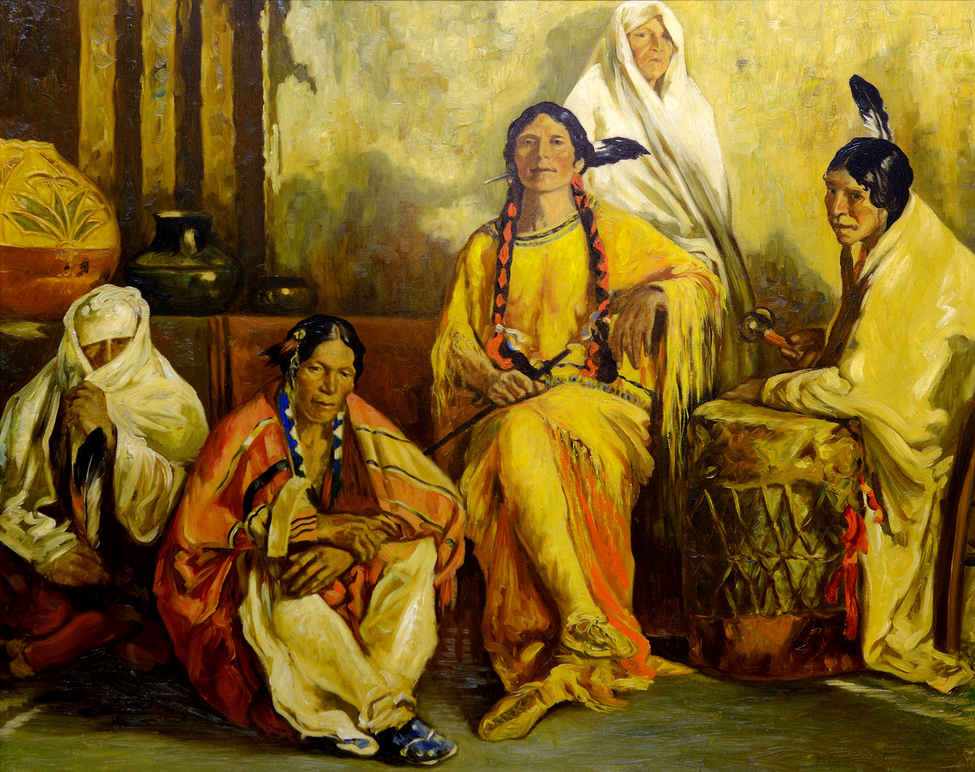 Born in Detroit, Michigan, Julius Rolshoven moved to New York City at the age of 18 to study at the Cooper Union Art Institute. Like many artists of the day, he traveled abroad to continue his studies, spending time at the Academie in Dusseldorf, Germany, before traveling to Munich with the intention of studying at the Royal Academy. Instead of enrolling at the Academy, however, he joined an artists’ colony headed by Frank Duveneck, a well-known American expatriate who specialized in portraits and figurative paintings. In 1887, Rolshoven moved to Paris where he studied at the Academie Julien. There he met fellow artist E. Irving Couse, one of the founders of the Taos Society of Artists.