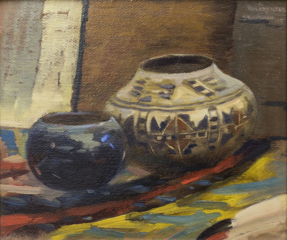 Known for his portraiture, figure paintings, and landscapes, Rolshoven returned to the United States after the First World War. Spending his honeymoon in New Mexico led him to settle in Santa Fe in 1916. In 1917, he was invited to be an associate member of the Taos Society of Artists, ultimately becoming an active member in 1918. Rolshoven divided his time between Santa Fe and Florence, Italy, where his home was the former residence of Lisa Gherardini, the model for Leonardo Da Vinci’s most famous work of art, the Mona Lisa.