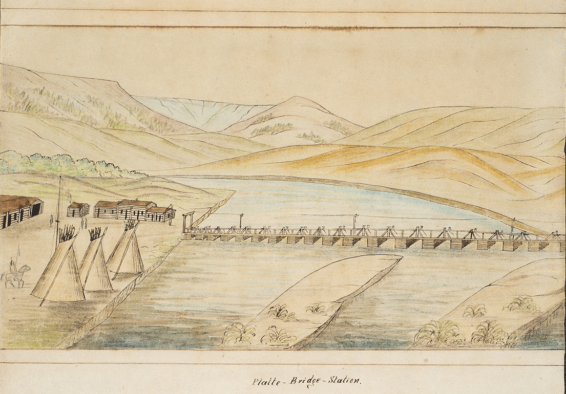 Life for the western soldier at this time consisted of sustained moments of calm punctuated by intense violence. "Despite Indian hostilities, life for the Eleventh Ohio generally consisted of monotonous routine, especially at the scattered stage stations.... Recreation consisted mainly of reading and hunting." For his part, Rinehart used some of this free time to create lasting visual documents showing those critical locations during an extremely tumultuous period of American history. Eight of his works have been documented, three of which were returned to his family with his "effects." The watercolor scenes displayed here are the remaining group of five that, remarkably, have survived.