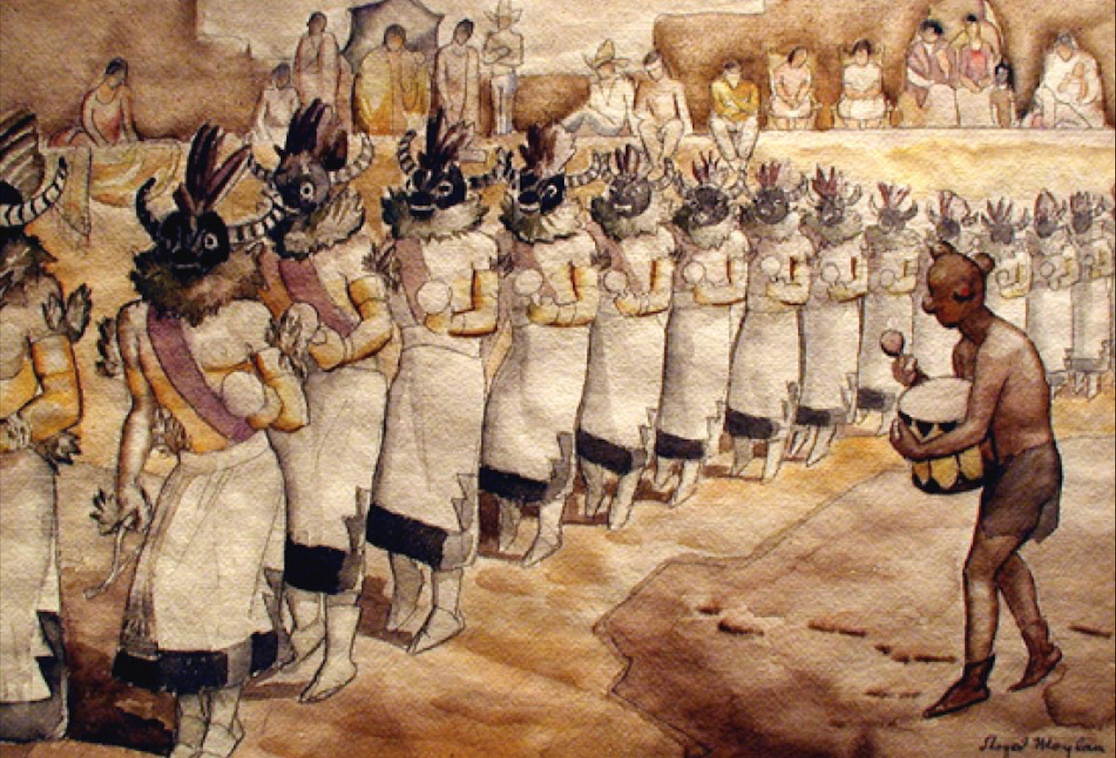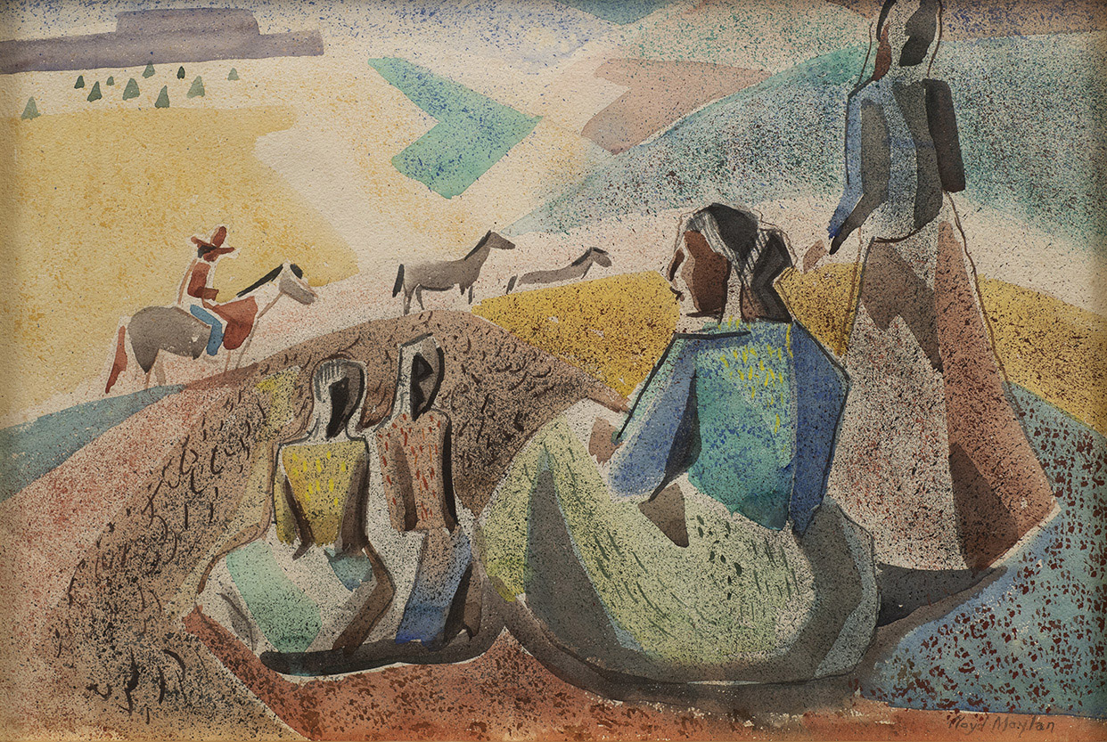 From St. Paul, Minnesota, Lloyd Moylan was a painter who specialized in Southwest Native American subjects. He was also a museum curator and muralist whose work is in the Museum of New Mexico and the Penrose Public Library. Moylan studied at the Minneapolis Art Institute, the Art Students League in New York, and the Broadmoor Art Academy in Colorado Springs. From 1929 to 1931, he taught at the Broadmoor Academy, and he later became curator of the Museum of Navajo Ceremonial Art in Santa Fe (now, the Wheelwright Museum of the American Indian). From the time he attended the Broadmoor Academy, he made numerous trips into Arizona and New Mexico, where he sketched and painted the Hispanic and Native American population.