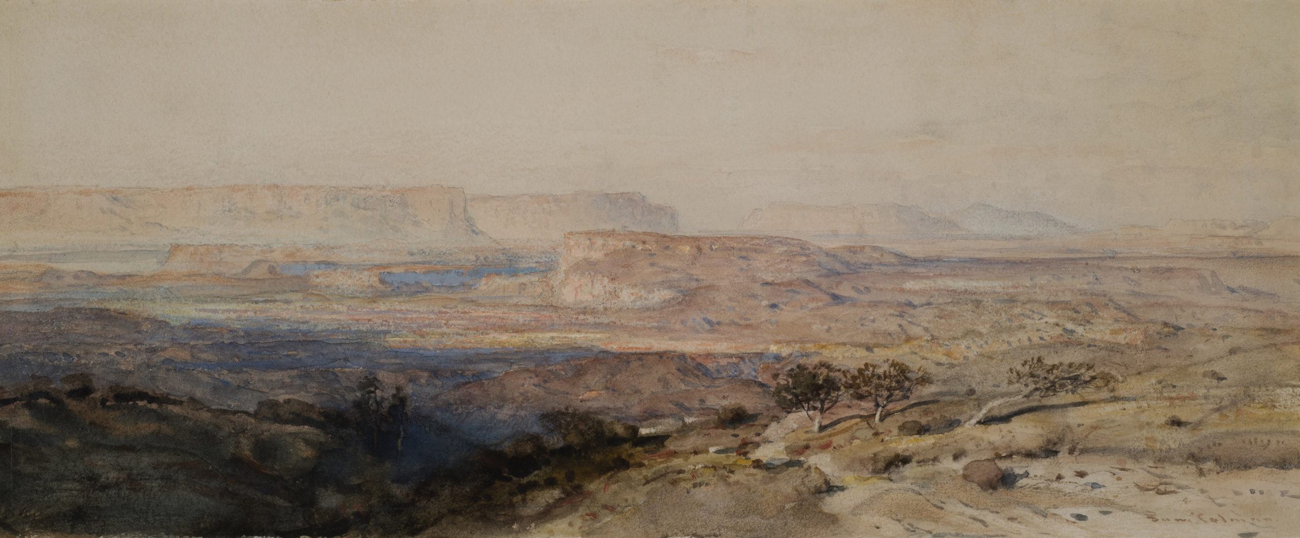 A member of the second generation of Hudson River School painters, Samuel Colman was raised in New York City, the son of an art book publisher. In New York he studied briefly with Asher B. Durand and at the age of nineteen was featured in an exhibition at the National Academy of Design. By the age of twenty-two he was made an associate member of the Academy and full member in 1862. Colman embarked on the first of several trips to Europe in 1860 and began traveling to the American West in the early 1870s. Colman visited and worked at Yosemite, the Grand Canyon of Arizona, and in Utah, Wyoming, and along the Oregon Trail. He is known for the skillful manipulation of the effects of light on a scene and for his sensitive approach to the atmosphere surrounding his subject, which lends an air of quiet beauty or majesty to his work.