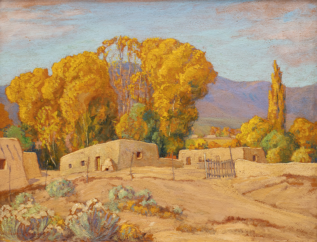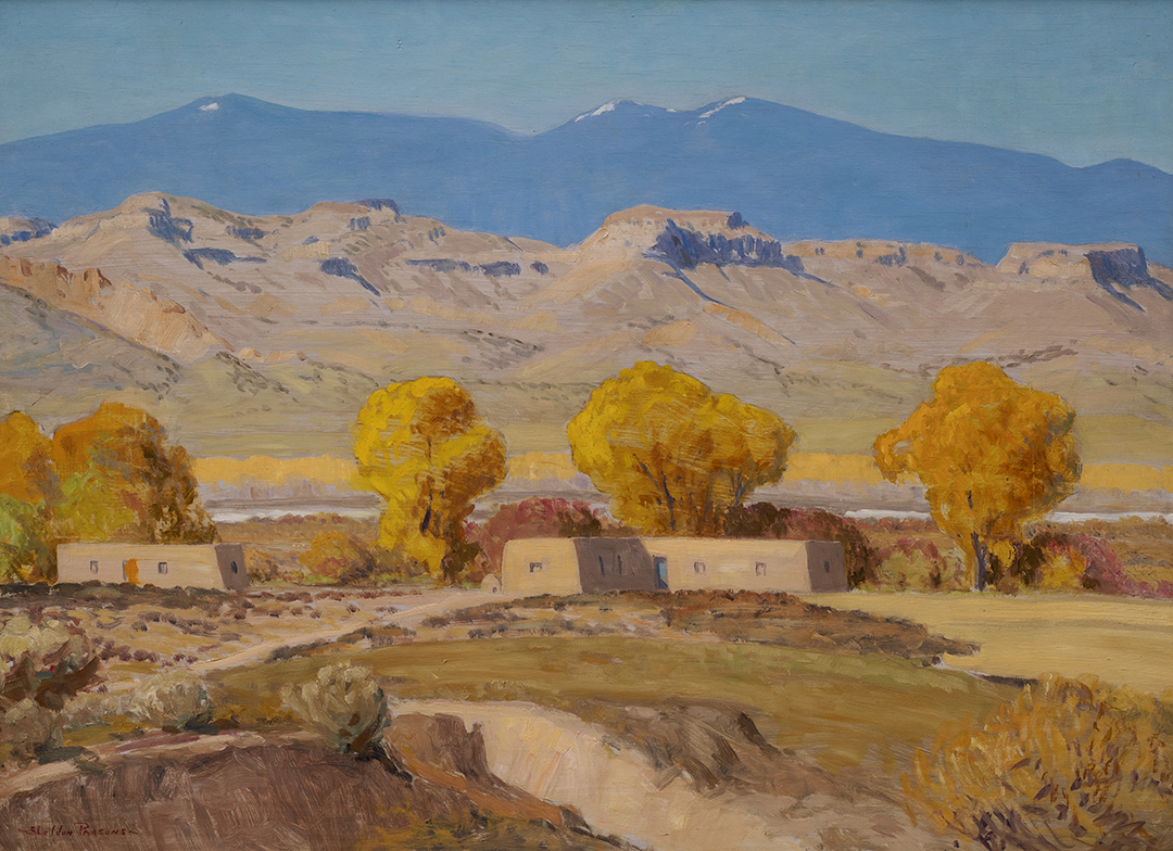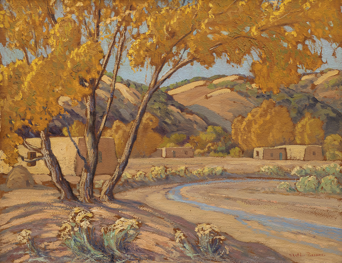 Following his recuperation in Santa Fe, Parsons decided to remain in the fledgling city, becoming one of Santa Fe's first resident artists. Inspired by the color and light of his new home, Parsons turned his Barbizon and Impressionist training to the northern New Mexico landscape in all of its limitless variation. He masterfully recorded the unique character of Santa Fe neighborhoods and nearby Pueblos, as well as the expanse of the desert and mountains. After the New Mexico Museum of Art opened in 1917, Parsons was appointed as its curator of exhibits. With this position he became an advocate for both local and visiting artists, and helped Santa Fe develop into one of this country's most vibrant art communities.