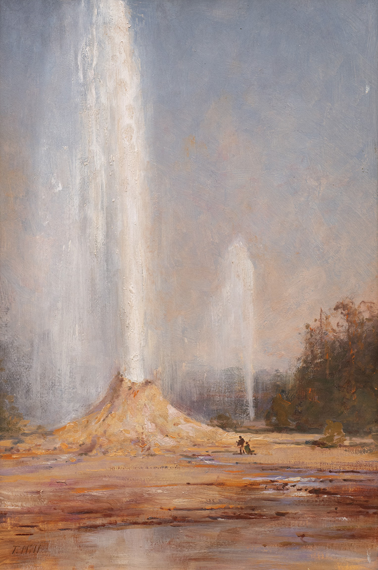 Now famous for his "romantic and grand view landscapes,” Thomas Hill belonged to the White Mountain School of landscape painters early in his career. Through this Boston artists' circle, he associated with Albert Bierstadt, Asher B. Durand, Virgil Williams, and others. Most well known for his depictions of California's Yosemite Valley and its giant redwoods, Hill also painted still lifes, portraits, and historic scenes of the West. During the art boom of the 1870s, Hill became one of California's most prominent landscape painters. His paintings became increasingly individualistic as he refined his brush techniques to create distinctive light and tonal effects.