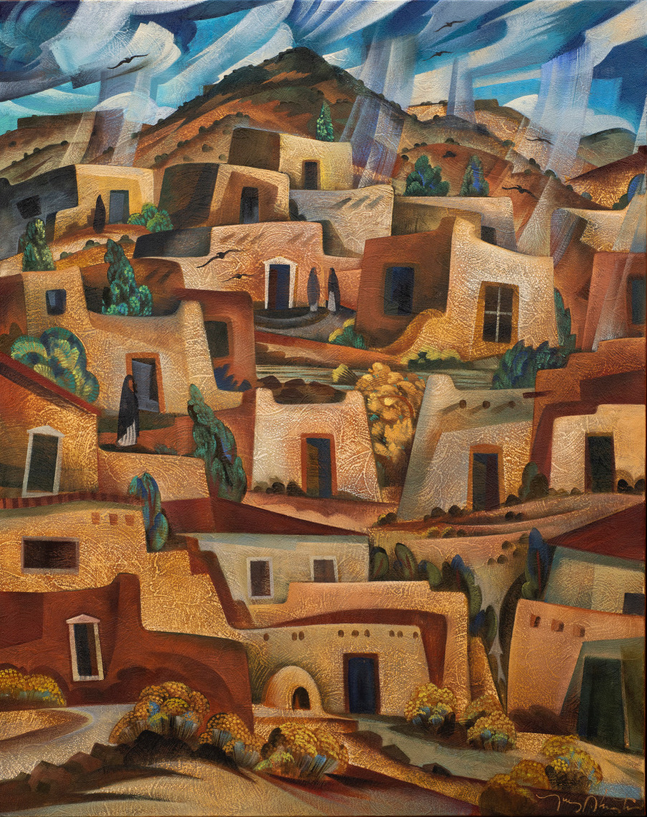 Tony Abeyta is a Navajo contemporary artist working in mixed-media paintings. A graduate of New York University with an honorary doctorate from the Institute of American Indian Arts in Santa Fe, Abeyta was the 2012 recipient of the New Mexico Governor’s Excellence in the Arts award. He was also recognized as a Native Treasure by the Museum of Indian Arts and Culture. Abeyta currently works in Santa Fe, New Mexico, and Berkeley, California. His work is included in the Smithsonian’s National Museum of the American Indian; the Boston Fine Arts Museum; the Heard Museum in Phoenix, Arizona; the New Mexico Fine Arts Museum; the Autry Museum in Los Angeles, California; and the Eiteljorg Museum in Indianapolis. Abeyta is also well represented in many other public and private collections.