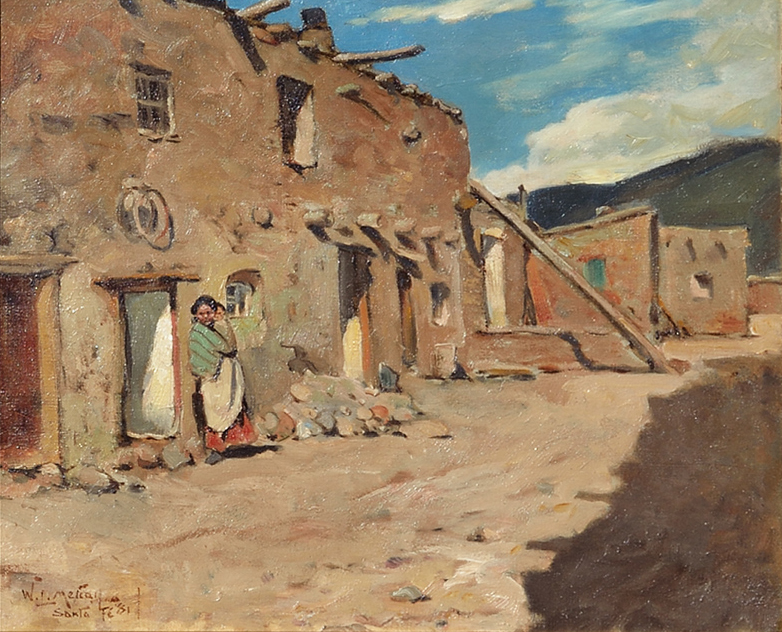 Born in Lowell, Massachusetts, Willard Metcalf was a well-known East Coast Impressionist painter, teacher, and illustrator who also depicted the Southwest. He was heralded in 1925 as the “poet laureate of the New England hills.” He apprenticed to a wood engraver and studied landscape painting with George Loring Brown. He also attended the Boston Museum of Fine Arts and took life classes at the Lowell Institute.