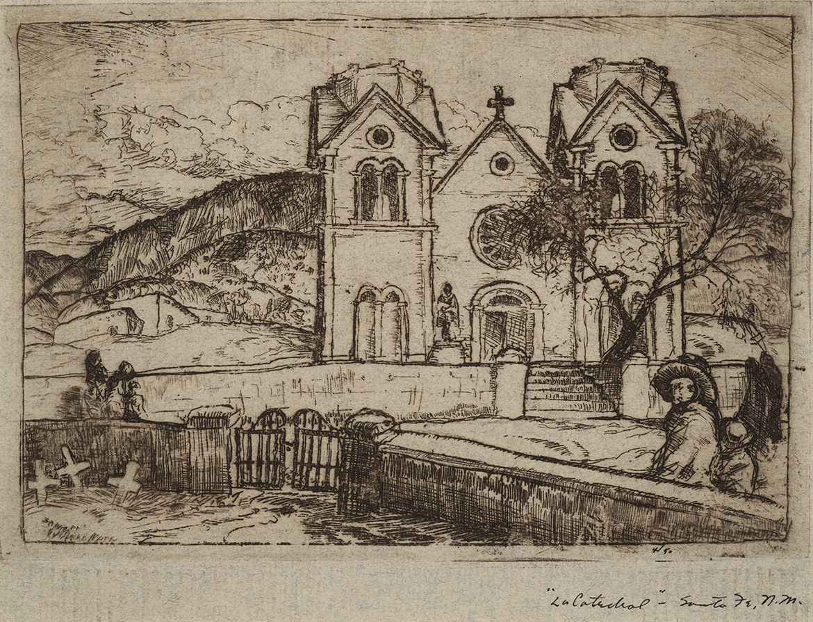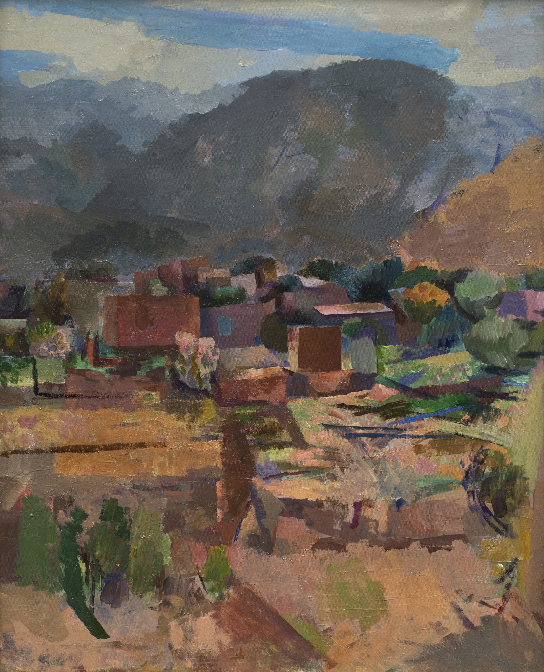 For many American-born artists in the early decades of the twentieth-century, New Mexico provided an exciting alternative to the more academic training available in Europe. Willard Nash was born in Philadelphia, trained in Detroit, and moved to New Mexico in 1920. One of the five young painters known as “Los Cinco Pintores,” Nash was very attracted to modernism. His work shows the influence of modernist Andrew Dasburg, with whom he studied in New Mexico. Like Dasburg, Nash believed that form and color in painting took precedence over the depiction of the object. While studying with Dasburg, he experimented with the techniques of Cezanne, whose cubist approach to the landscape made a lasting impression. His devotion to the architectonic structure of Cezanne in the thirties and to abstraction in the forties marks Nash as one of the more daring of New Mexico modernists.